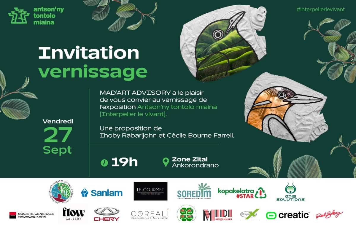 Du 28 septembre au 17 octobre 2024, 13 artistes présentent leur projet sur la relation au vivant, cherchent à nous reconnecter au vivant et à montrer la richesse des êtres vivants qui nous entourent à l’instar des oiseaux de Madagascar. Entre sensibilisation, sublimation et réflexion, l’exposition Antson’ny tontolo miainaI, Interpeller le vivant en français est une ode aux oiseaux qui enrichissent la grande île rouge.