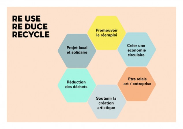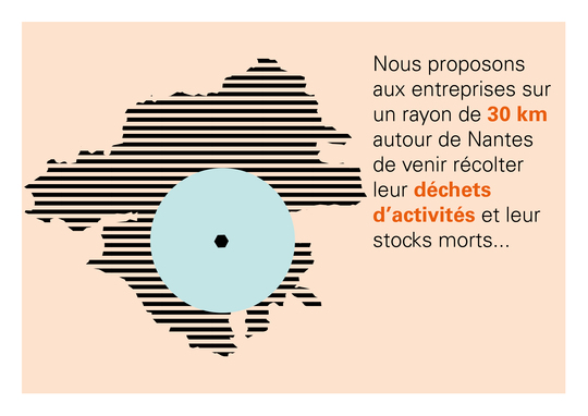 Ils collectent des « MATIÈRES SECONDES » de bonne qualité auprès des entreprises et des institutions de la région nantaise afin de les revendre à bas prix aux créatifs et ainsi leur permettre de réduire leurs coûts de production. Ils sont persuadés que la mise en réseau des milieux de l’entreprise et les milieux créatifs permet la mise en place d’un cercle vertueux qui profite à toutes et à tous.