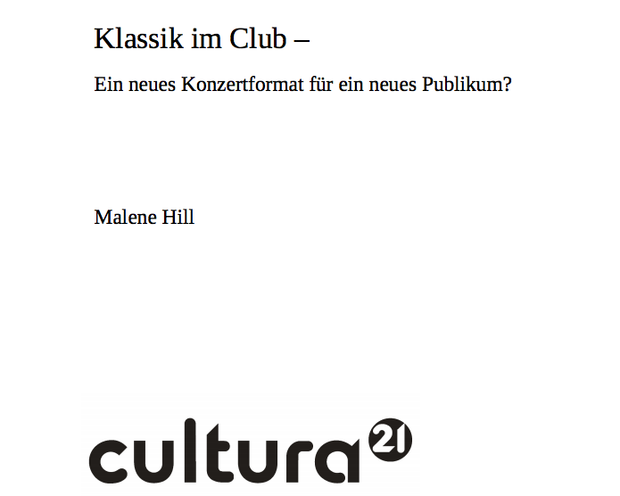 With these two arguments in mind, it becomes apparent that the work conducted by Malene Hill on “Klassik im Club” is highly relevant to the contemporary question of cultural sustainability in the European context. »