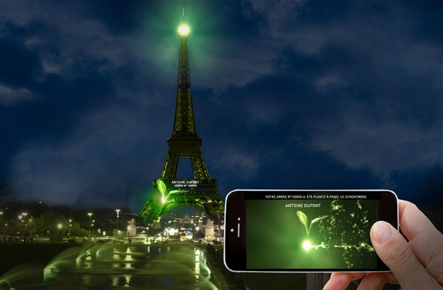 La Conférence sur le Climat qui se tiendra à Paris en novembre 2015 est un contexte idéal pour la mise en place de ce dispositif, permettant aux citoyens de se mobiliser autour d’un acte positif et constructif tout en montrant leur engagement. La tour Eiffel devient un indicateur mondial permettant de visualiser l’engagement citoyen. Elle permet de rendre visible et mesurer en temps réel l’évolution du nombre d’arbres plantés dans le monde durant la COP21.